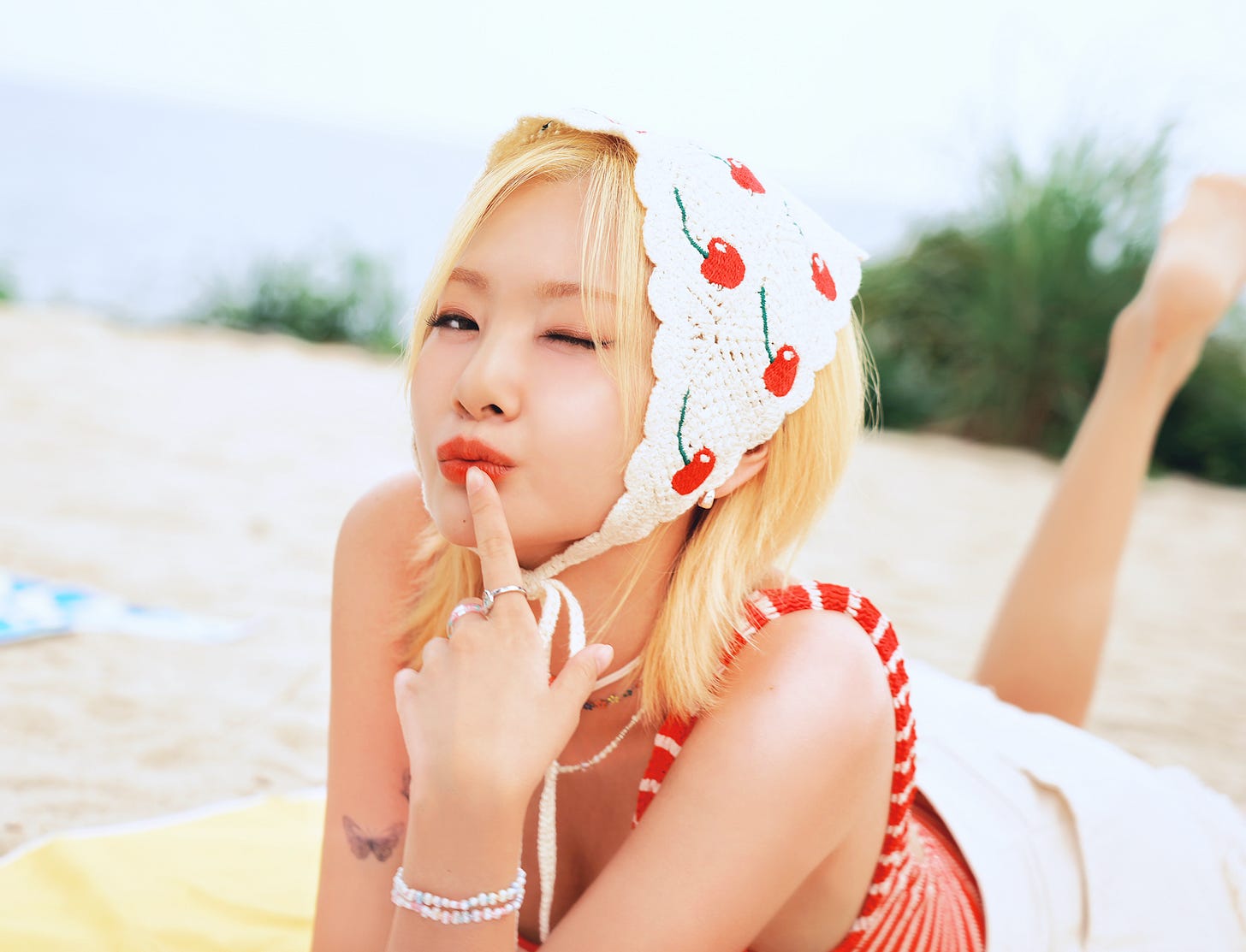 On the new single: “Lips” is a song I wrote at the beginning of my [career]. Now that I look back at the song I wrote when I was young, there are some embarrassing and burdensome parts, but I think it is a song that has a lively and refreshing feeling. To be honest, the lyrics are nothing special and hard to hear, and the melody is also raw, made without formality. Still, doesn’t a meaningless song sometimes give you a nice boost of dopamine? I played it to people around me in advance, and everyone was naturally humming the melody of this meaningless song! That alone makes this song half a success. I think “Lips”’s strange charm can make this a hot summer for many people.